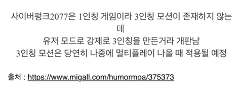 [스크랩] [게임]사이버펑크 2077 3인칭 모드 근황 작성자과타쿠|작성시간21.01.09|조회수5,329 목록 댓글 10 글자크기 작게가 글자크기 크게가 다음검색 스크랩 원문 : 도탁스 (DOTAX) 현재 게시글 추가 기능 열기 북마크 공유하기 신고 센터로 신고 댓글 댓글 10 댓글쓰기 답글쓰기 댓글 리스트 작성자얼었습니다 | 작성시간 21.01.09 ㅋㅋㅋㅋㅋㅋㄱㄱㅋㅋㄱㅋㄱㅋㄱㄱㅋㅋㅋㅋㅋㅋㅋㅋㅋㅋㅋㅋㅋㅋㅋㅋㅋㅋㅋㄱㅋㅋㄱㅋㄱㅋㄱㅋㄱㅋㄱㅋㄱㅋㄱㅋㅋㅋ 작성자아라크네 아다만토스 | 작성시간 21.01.09 나 처음에 말인줄 작성자도영이의 마지막 끄나풀 | 작성시간 21.01.09 상체 뭐냐고 ㅋㅋㅋㅋㅋㅋㅋㅋㅋ 작성자그러게방구나뀌고코나팔껄 | 작성시간 21.01.09 징그러 작성자이 졔 | 작성시간 21.01.09 1 말인줄 ㅋㅋㅋㅋㅋㅋㅋㅋㅋㅋㅋㅋㅋㅋㅋ 댓글 전체보기