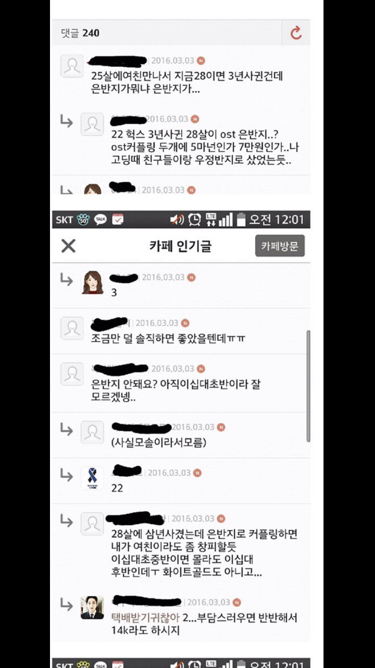 이런 일이 있은 후에도 여자친구는 반지를 끼고 다니지 않더군요..