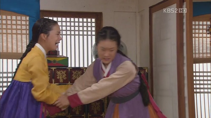 그리고 잠시 후, 방에 있던 세령이 밖으로 뛰쳐나오는데 윤씨 부인이 앞을 가로막아요