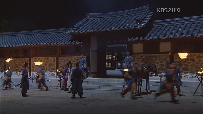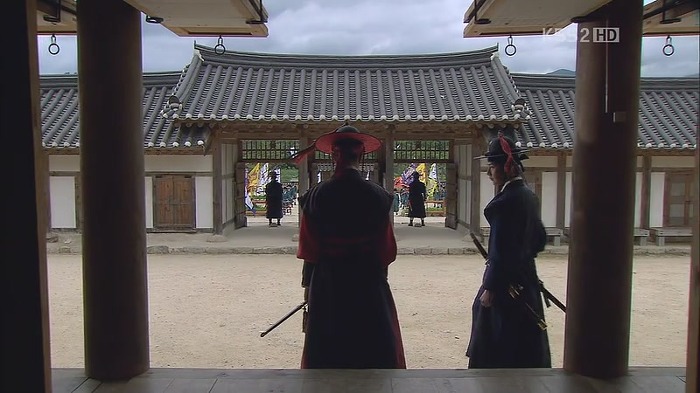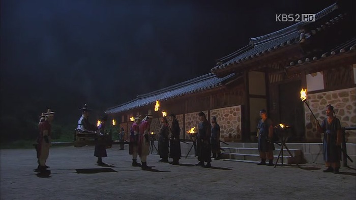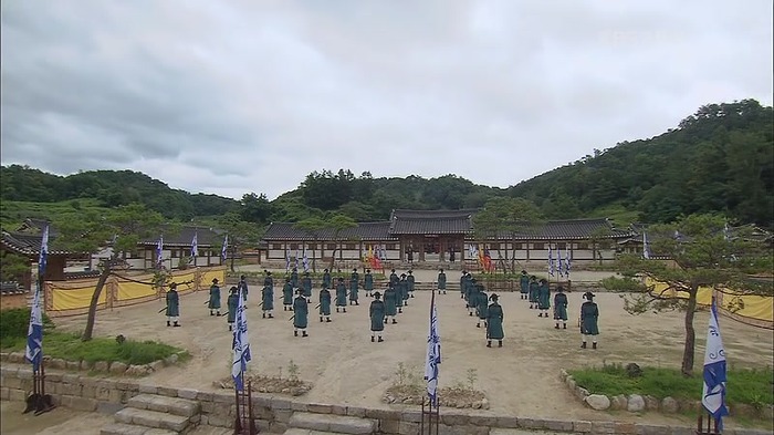 그 날 오후 한성부 마당, 군사들이 도열해 있습니다