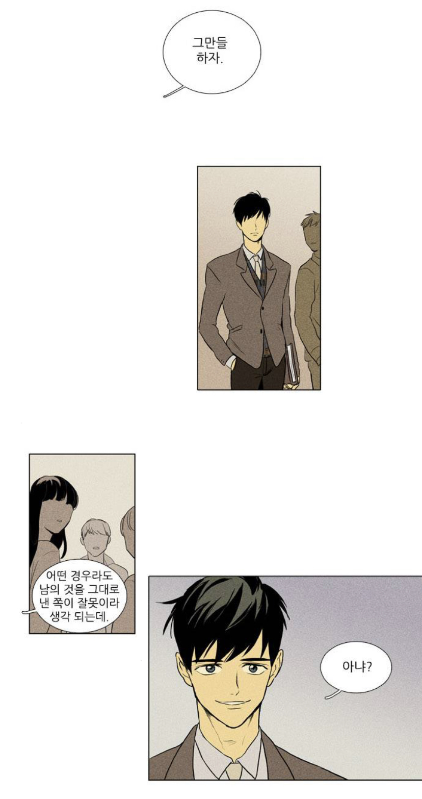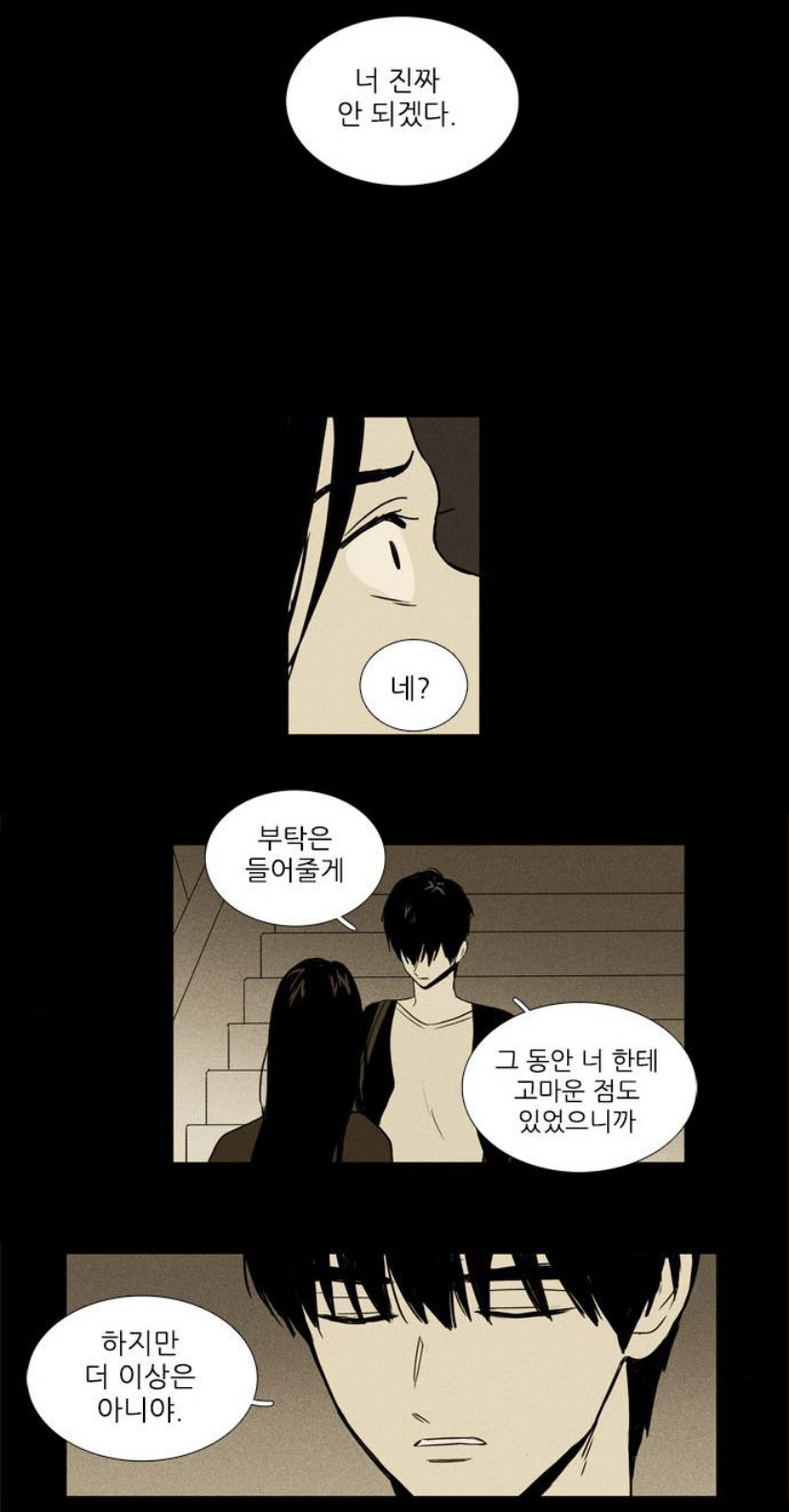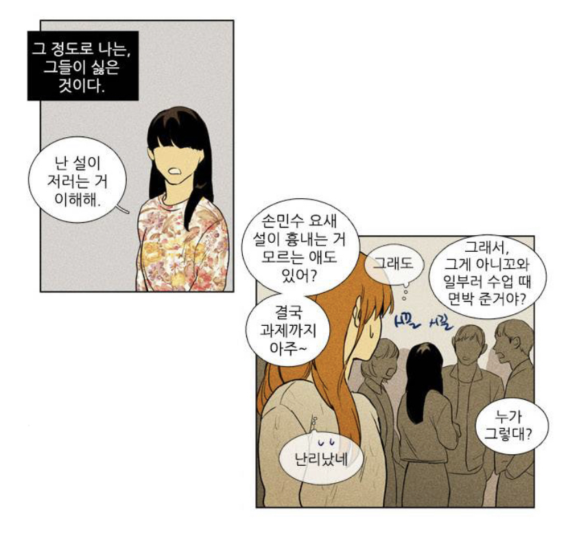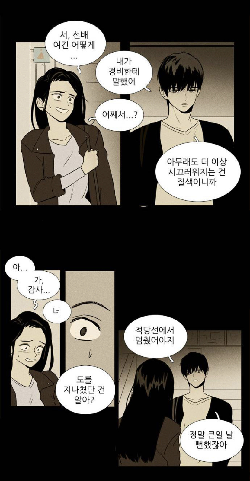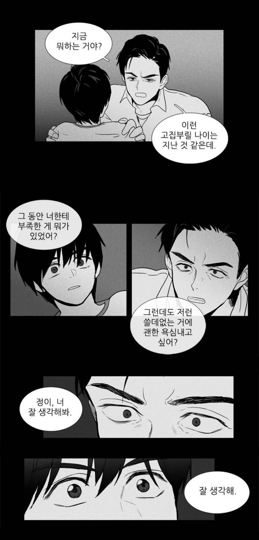 한창 연재중일 땐 유정이 소시오패스라는 의견이 주축이었는데 안 끊고 한 번에 읽다 보니까 유정은 소시오패스가 아니라 <사람들과 그 사이에 있는 자신에게 지친 사람> 으로 느껴졌음
