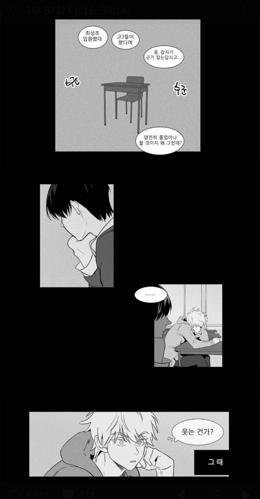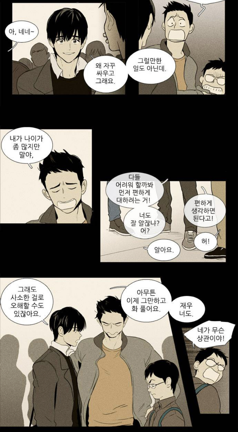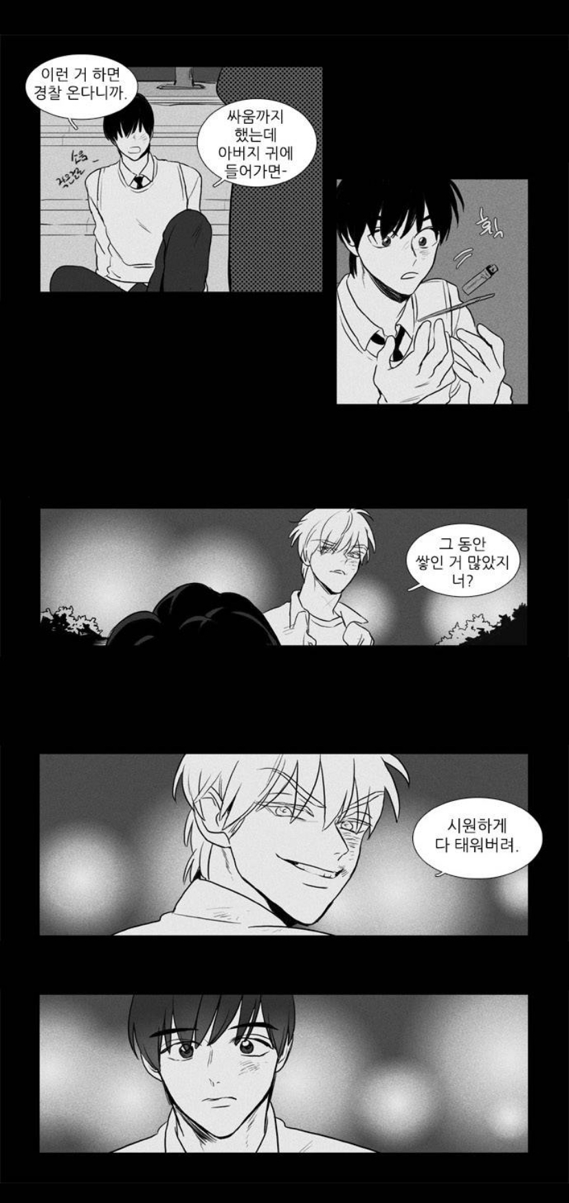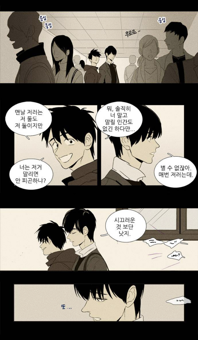 한창 연재중일 땐 유정이 소시오패스라는 의견이 주축이었는데 안 끊고 한 번에 읽다 보니까 유정은 소시오패스가 아니라 <사람들과 그 사이에 있는 자신에게 지친 사람> 으로 느껴졌음