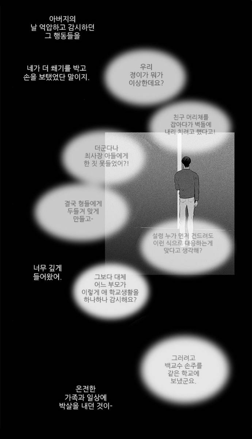 백인호의 손을 망가트린 건 저 피아노 놈이 파이프로 손을 내려쳤기 때문이고, 그건 그 피아노 놈의 선택이었지만 유정의 말이 영향을 끼쳤을 순 있지