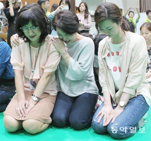 이후 무릎꿇고 눈물을 흘리던 학부모님들은