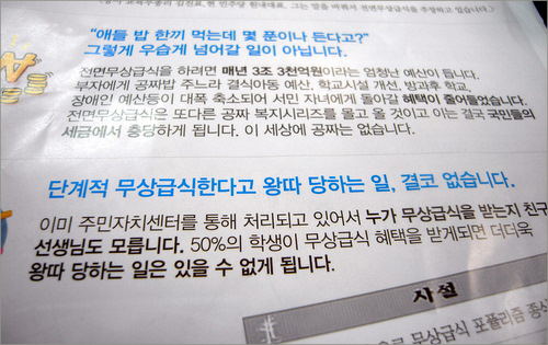 한마디로 학부모들에게 '차별 무상급식 오세훈 정책에 지지해라'