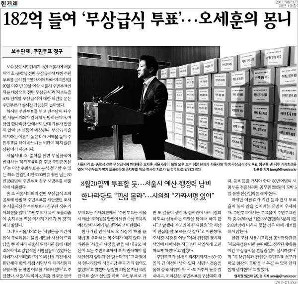 이 무상급식 투표가 세금 182억을 들였다는 것.