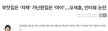 서울시장 지지율 1위라는 후보의 선민의식이 보이지?