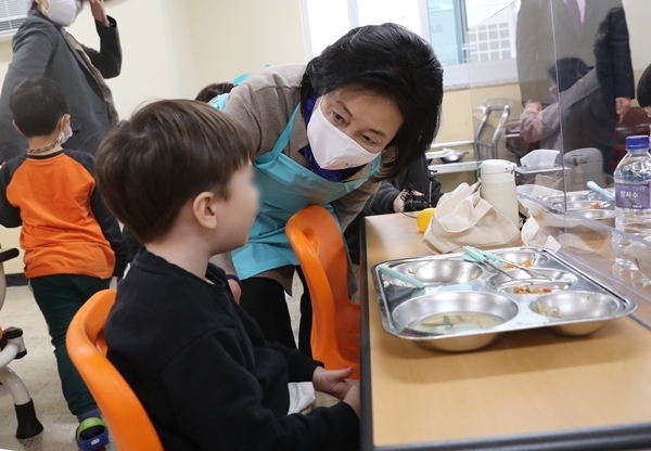 급식시간을 앞두고 있는 무상급식 수혜를 받는 아이들.