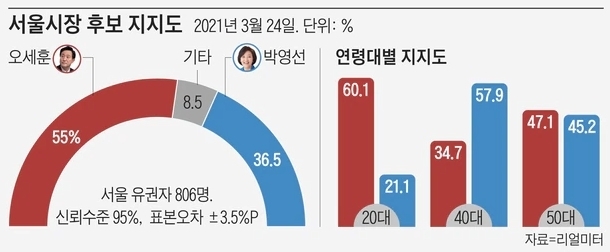 요즘의 서울시장 후보 지지율이야.