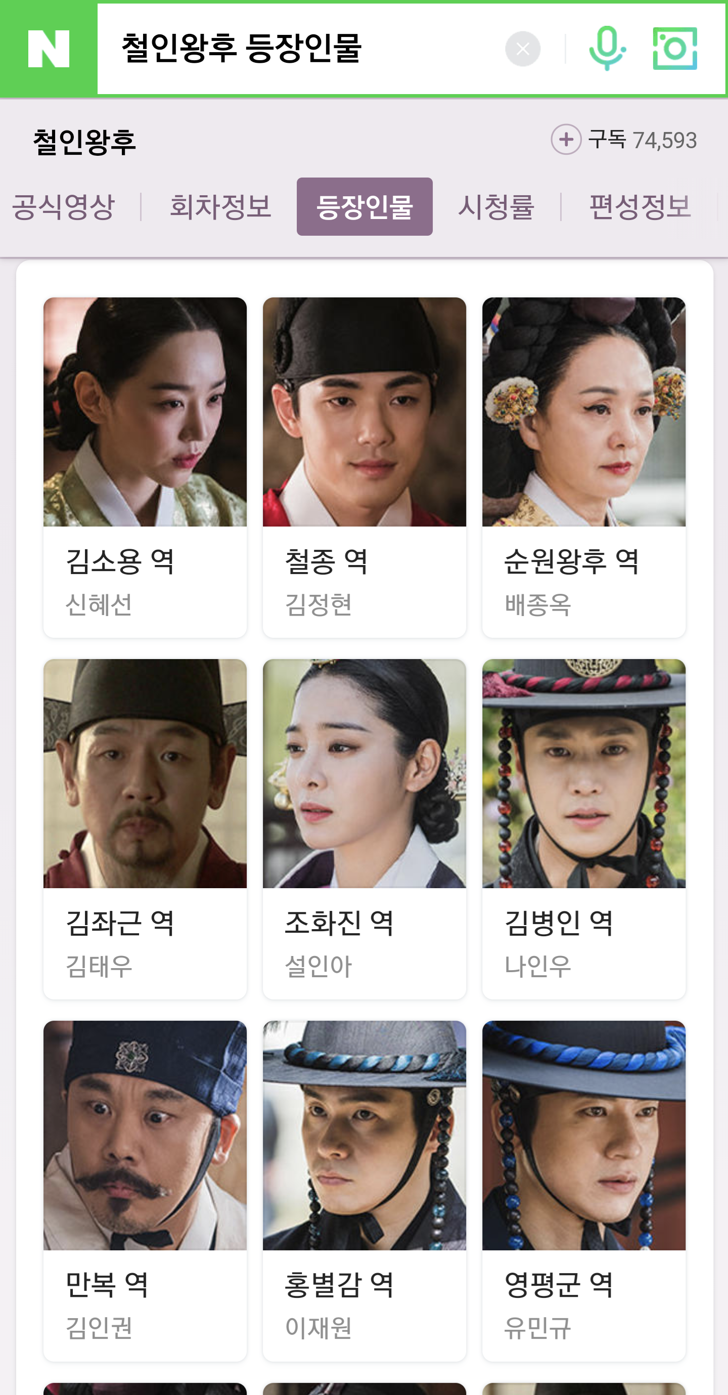 조선구마사에 이어서 쓰는 철인왕후 출연배우 목록