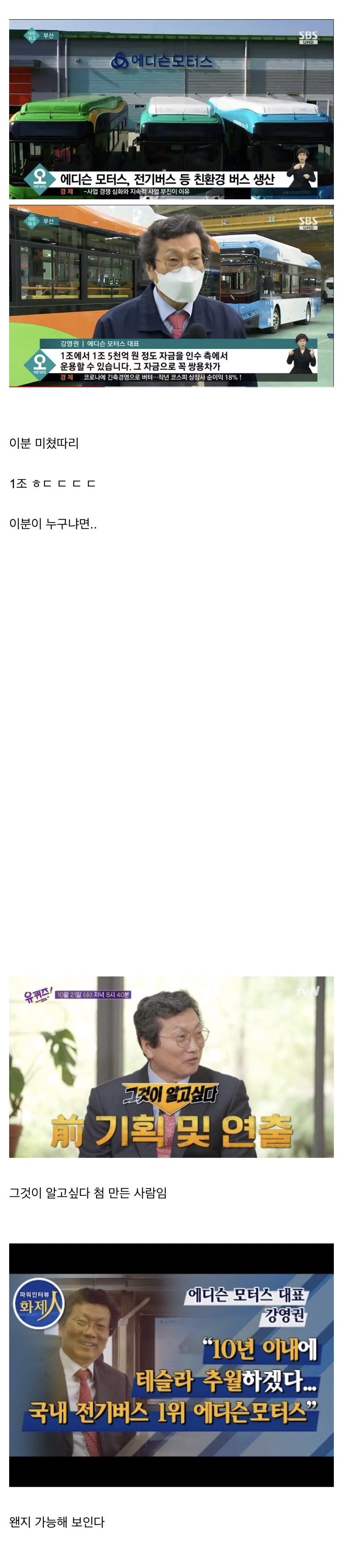 [기타]쌍용차 인수하겠다는 중소기업 작성자오전열한시삼십사분|작성시간21.04.10|조회수11,075 목록 댓글 24 글자크기 작게가 글자크기 크게가 https://www.dogdrip.net/dogdrip/317398883 다음검색 현재 게시글 추가 기능 열기 북마크 공유하기 신고 센터로 신고 댓글 댓글 24 댓글쓰기 답글쓰기 댓글 리스트 작성자자빱내놔 | 작성시간 21.04.10 1조 미쳤다 그정도면 상장할 필요가 없겠는데...? 작성자슬픈개 | 작성시간 21.04.10 ㅜㅜ 아 꼭 뭔가 이런 게시글에는 주식얘기로 거의 도배되더라... 암튼 대단한 분!! 작성자이창윤어플리케이션 | 작성시간 21.04.10 이분이랑 이번 유퀴즈에 한국 최초 자율주행차 연구하는분이랑 투합하면 대박이겠다 작성자공식 권순영 | 작성시간 21.04.10 미친 작성자99.9%살균효과 | 작성시간 21.04.10 대박 댓글 전체보기