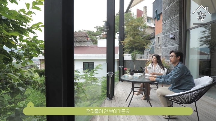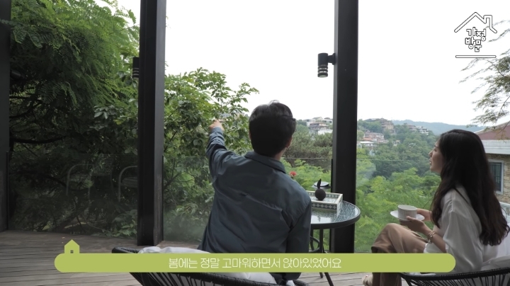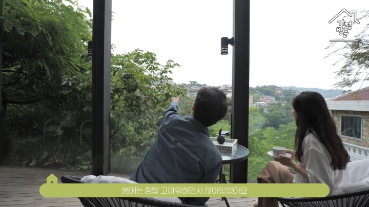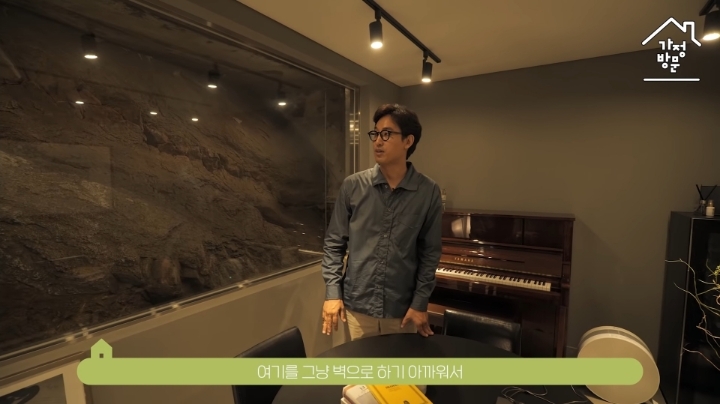 집 리모델링할 때 집을 받치고 있는 북한산 암벽을 그냥 두기 아까워 창을 내고 기운을 받고 있대긔...