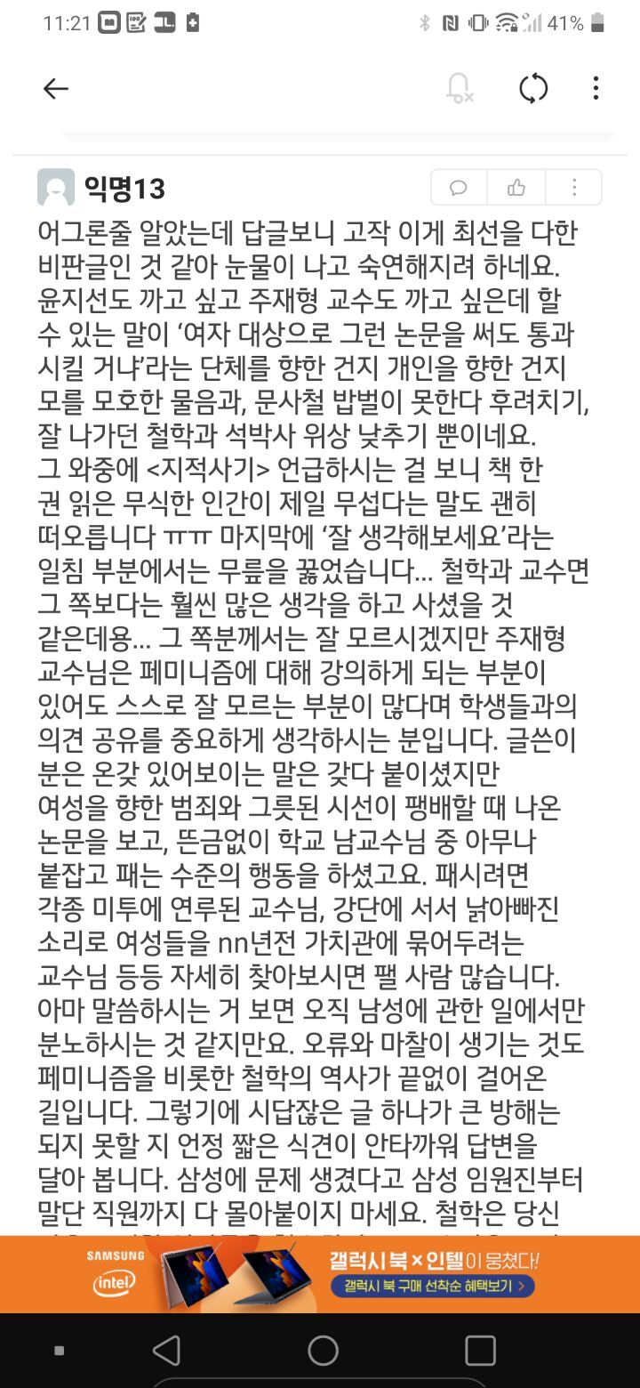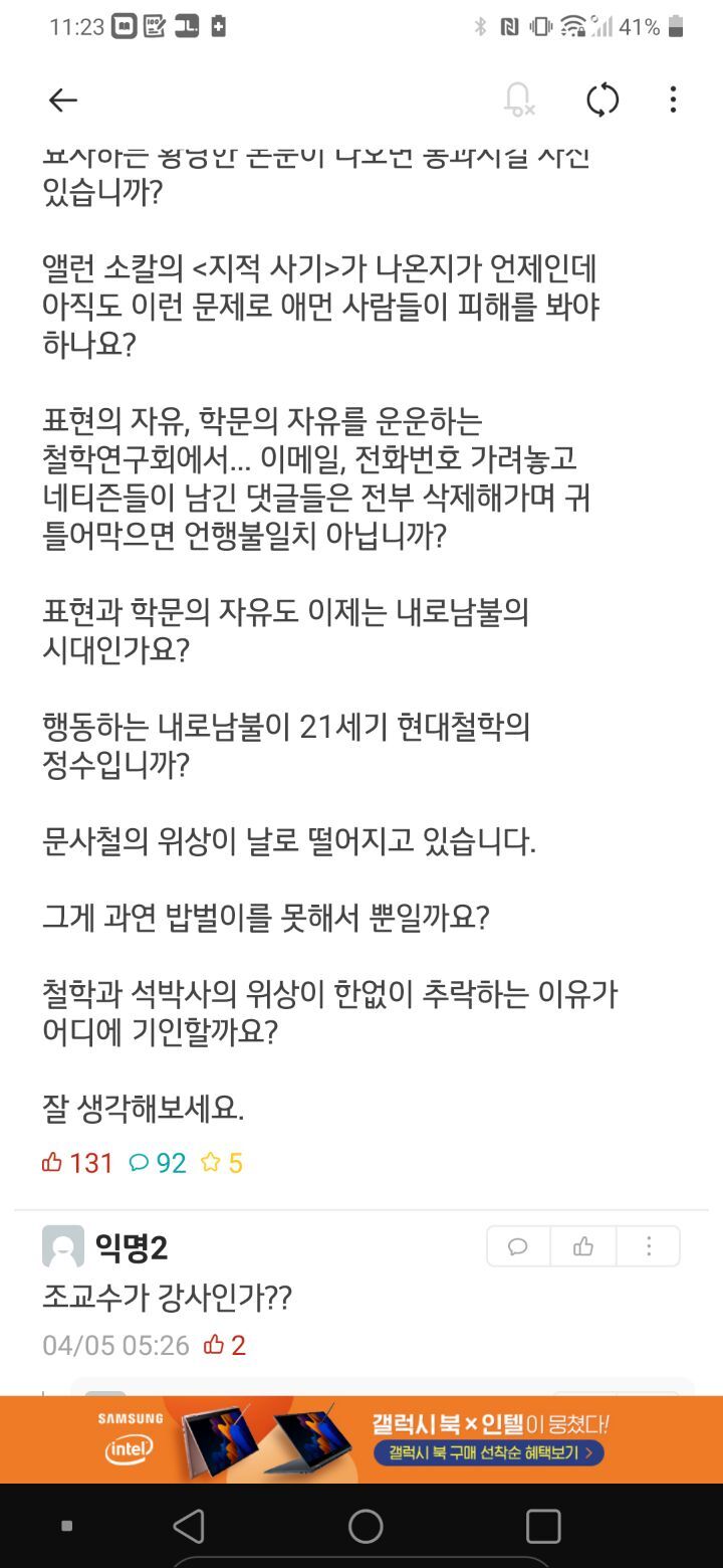 윤지선씨의 논문이 잘못되었다고 생각하면, 윤지선씨의 강의에 참여해서 반달리즘을 행하는게 아니라 니가 논문을 써서 반박했으면, 그 외 다른 교수들이 윤지선 교수님을 옹호를 하지 않았을거다.