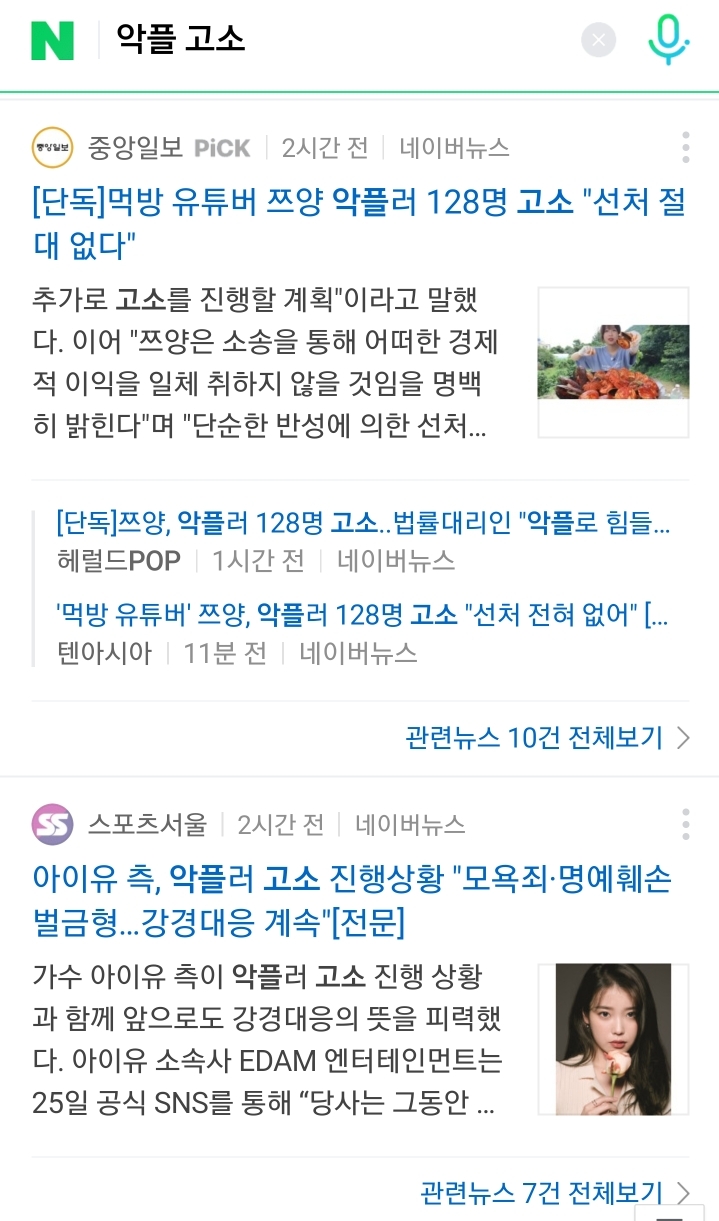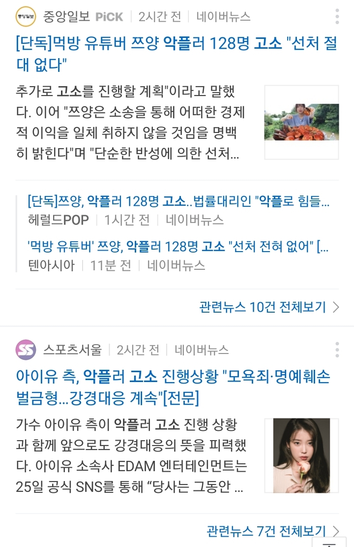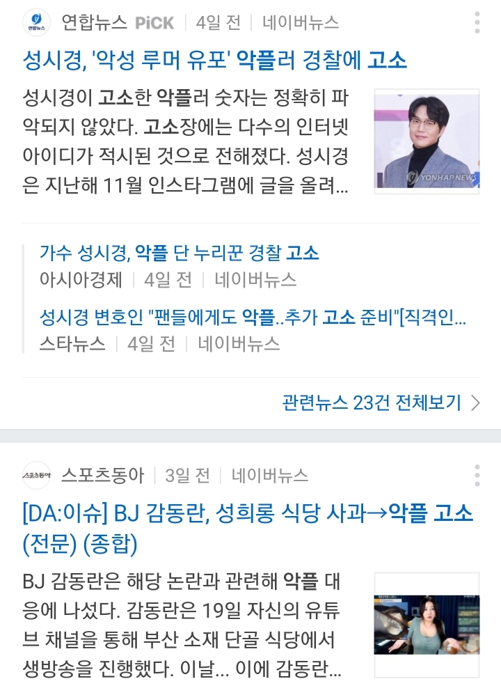 최근 악플러들을 고소하겠다고 기사 낸 유명인들.