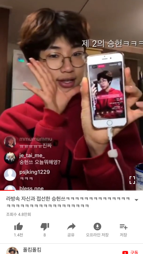 라방하다가 다른 핸드폰으로 자기 라방켰는데 진짜 개웃김ㅋㅋㅋㅋㅋㅋㅋㅋㅋㅋㅋㅋ 웃는것도 웃겨서 가져옴ㅋㅋㅋㅋㅋ