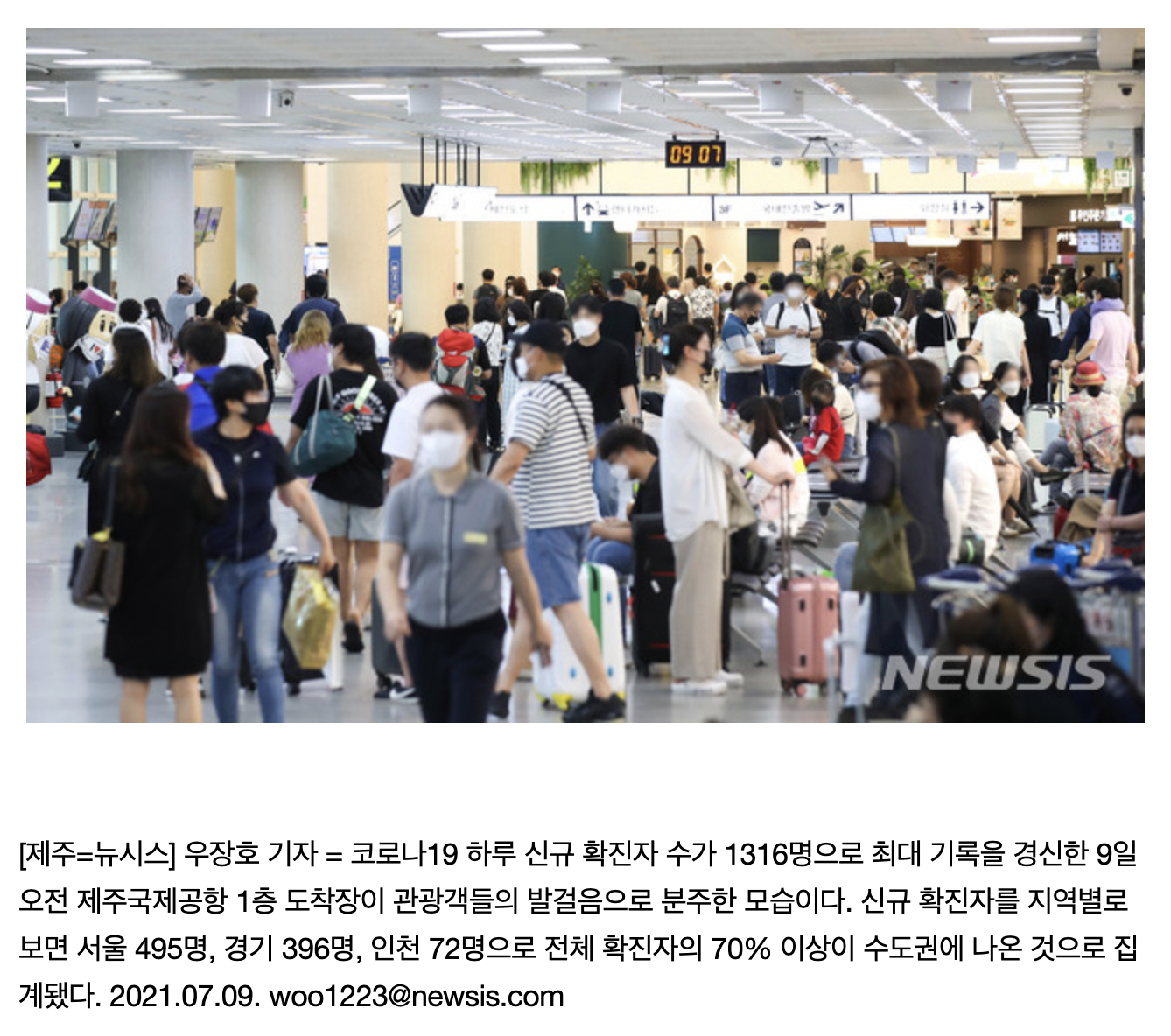 [기사]관광객 붐비는 제주공항 작성자너무 습해|작성시간21.07.09|조회수2,090 목록 댓글 0 글자크기 작게가 글자크기 크게가 https://news.naver.com/main/read.nhn?mode=LSD&mid=sec&sid1=102&oid=003&aid=0010597953 관광객 붐비는 제주공항[제주=뉴시스] 우장호 기자 = 코로나19 하루 신규 확진자 수가 1316명으로 최대 기록을 경신한 9일 오전 제주국제공항 1층 도착장이 관광객들의 발걸음으로 분주한 모습이다. 신규 확진자를 지역별news.naver.com 다음검색 현재 게시글 추가 기능 열기 북마크 공유하기 신고 센터로 신고 댓글 댓글 0 댓글쓰기 답글쓰기 댓글 리스트