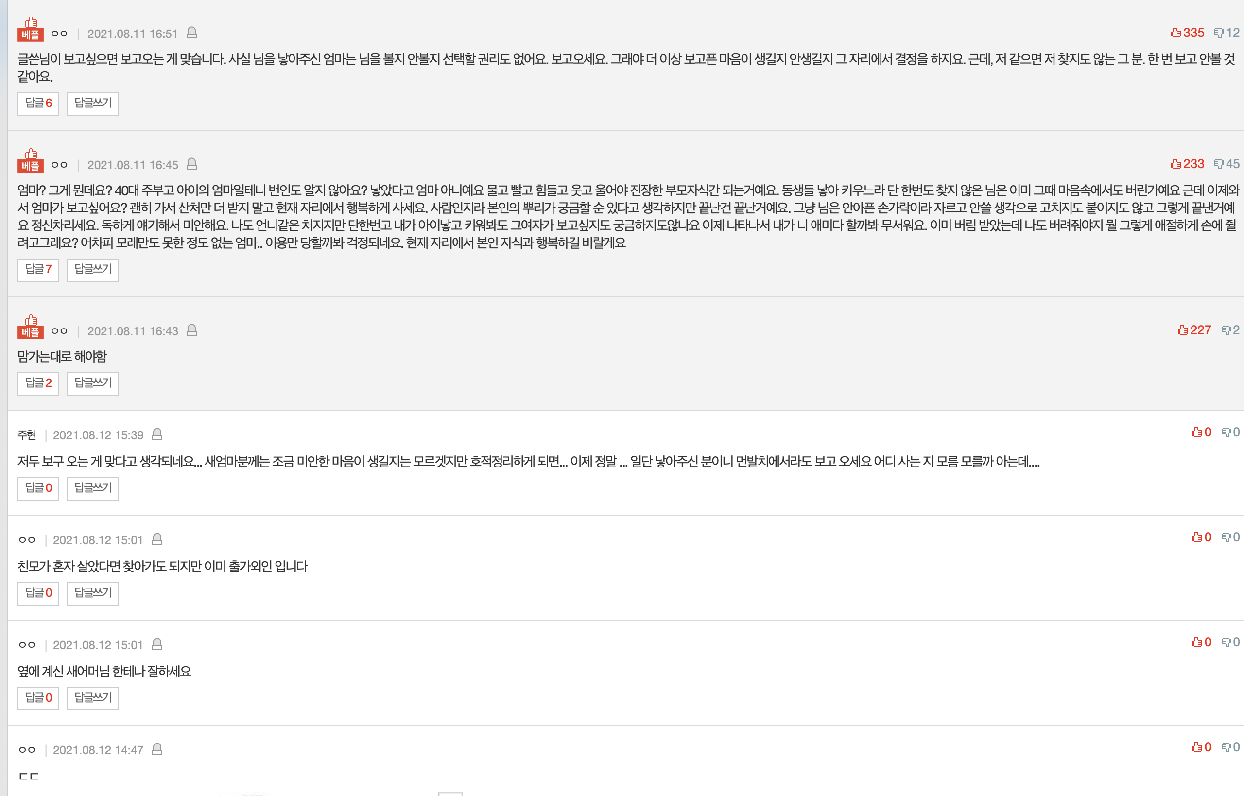 저도 아무리 생각해봐도 내새끼 못보고산다면 세상 못살고 그냥 죽어버릴꺼 같은데..그분은 절 버리고 잘 사는거니깐요.