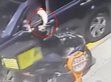 당시 오토바이는 시동이 걸려 있었고 비상등이 켜진 상태로 3~4분간 정차하고 있었다고 한다. 넘어진 오토바이는 근처에 주차 중이던 벤츠 차량 앞부분과 부딪혔다. 배달 칸에 실려 있던 내용물은 아스팔트 위로 쏟아졌다.
