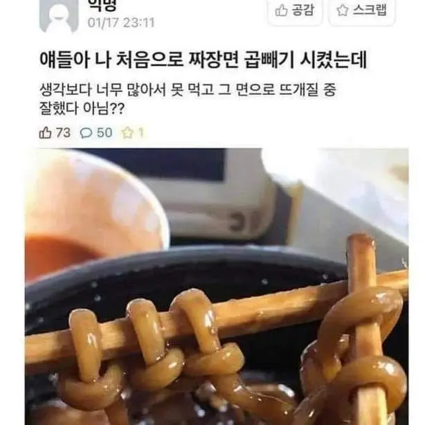 [유머]짜장면 곱빼기 시켰는데 작성자밀크맛 우유|작성시간21.10.12|조회수1,223 목록 댓글 0 글자크기 작게가 글자크기 크게가 다음검색 현재 게시글 추가 기능 열기 북마크 공유하기 신고 센터로 신고 댓글 댓글 0 댓글쓰기 답글쓰기 댓글 리스트