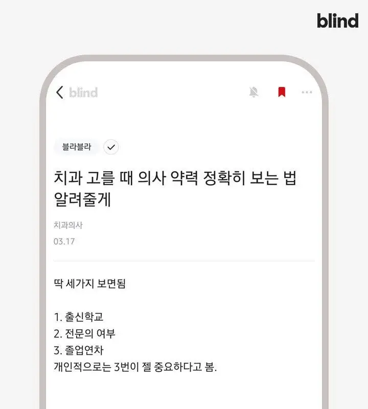 [스크랩] [기타]블라인드에 올라온 치과의사 고르는 법 작성자스태커2|작성시간21.12.04|조회수967 목록 댓글 0 글자크기 작게가 글자크기 크게가 다음검색 스크랩 원문 : 쭉빵카페 현재 게시글 추가 기능 열기 북마크 공유하기 신고 센터로 신고 댓글 댓글 0 댓글쓰기 답글쓰기 댓글 리스트