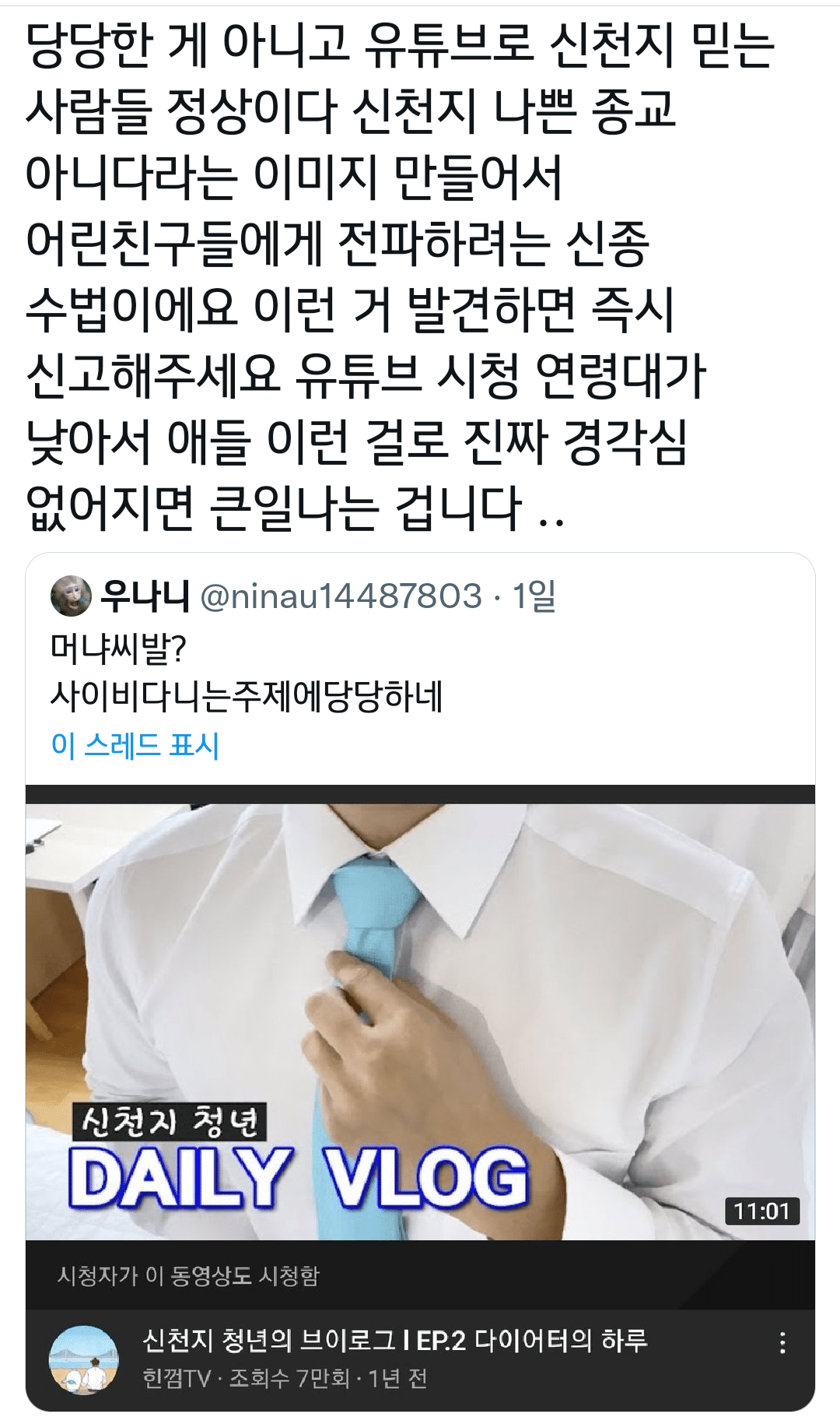 [기타]신천지 근황.jpg 작성자르크루제|작성시간22.01.07|조회수1,643 목록 댓글 0 글자크기 작게가 글자크기 크게가 다음검색 현재 게시글 추가 기능 열기 북마크 공유하기 신고 센터로 신고 댓글 댓글 0 댓글쓰기 답글쓰기 댓글 리스트