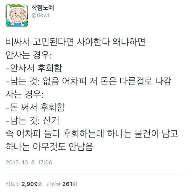 [스크랩] [기타]돈때문에 살까말까 고민된다면 사야한다.twt 작성자막이슈지기|작성시간15.10.25|조회수11,391 목록 댓글 34 글자크기 작게가 글자크기 크게가 출처 트위터ㅂㅂㅂㄱ 다음검색 스크랩 원문 : *여성시대* 차분한 20대들의 알흠다운 공간 현재 게시글 추가 기능 열기 북마크 공유하기 신고 센터로 신고 댓글 댓글 34 댓글쓰기 답글쓰기 댓글 리스트 작성자심쿵막내상쭝이 | 작성시간 15.10.25 ㄹㅇ앨범 돈 만원도안하는거 안샀는데 아티스트가 자살해버림 ..이젠 못구함 작성자내종인 | 작성시간 15.10.25 진심이다저거 작성자뀨큥뀽 | 작성시간 15.10.25 진짜임 이건 작성자쮸갈 | 작성시간 15.10.25 그래서 향수지름ㅎ 작성자썅니엔 | 작성시간 15.10.25 오오오오 댓글 전체보기