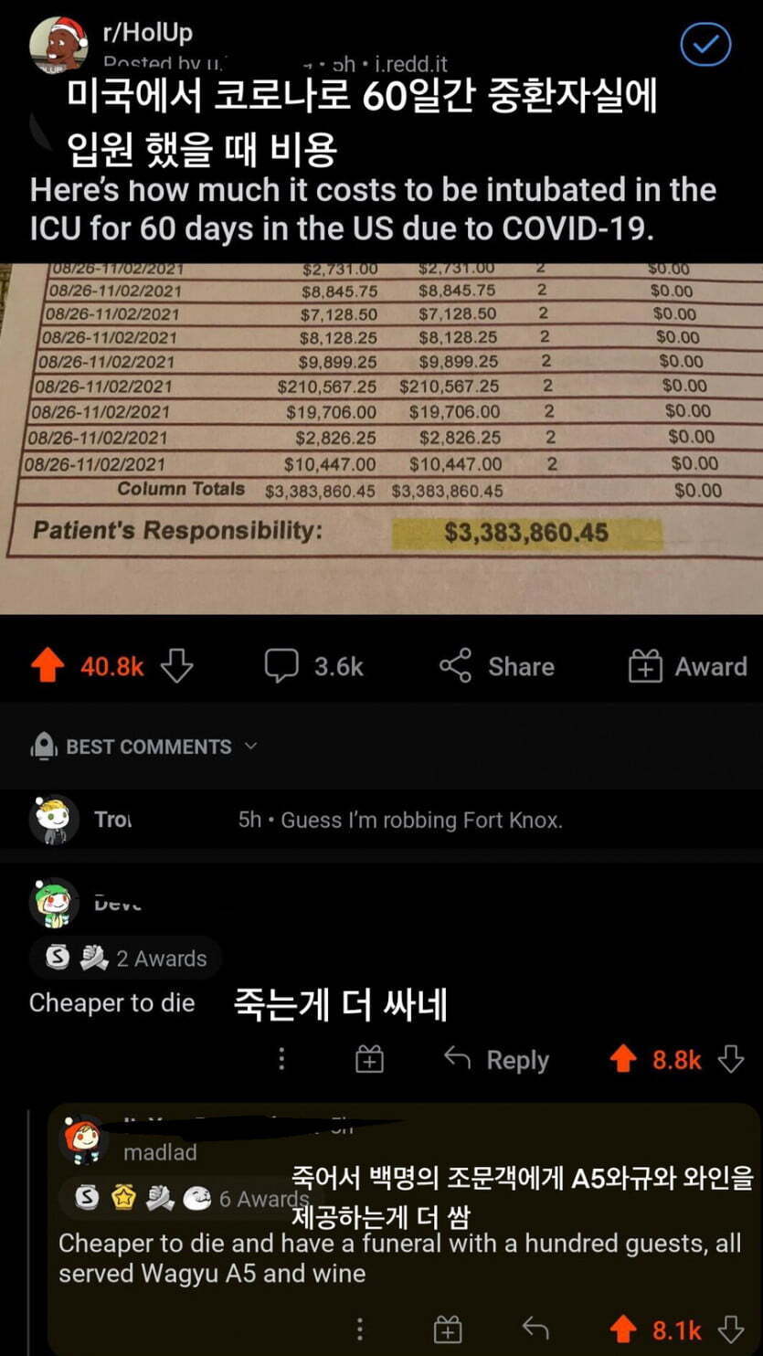 [기타]미국의 중환자실 비용 작성자Leave The Door Open|작성시간22.04.04|조회수2,121 목록 댓글 0 글자크기 작게가 글자크기 크게가 약 40억... 다음검색 현재 게시글 추가 기능 열기 북마크 공유하기 신고 센터로 신고 댓글 댓글 0 댓글쓰기 답글쓰기 댓글 리스트