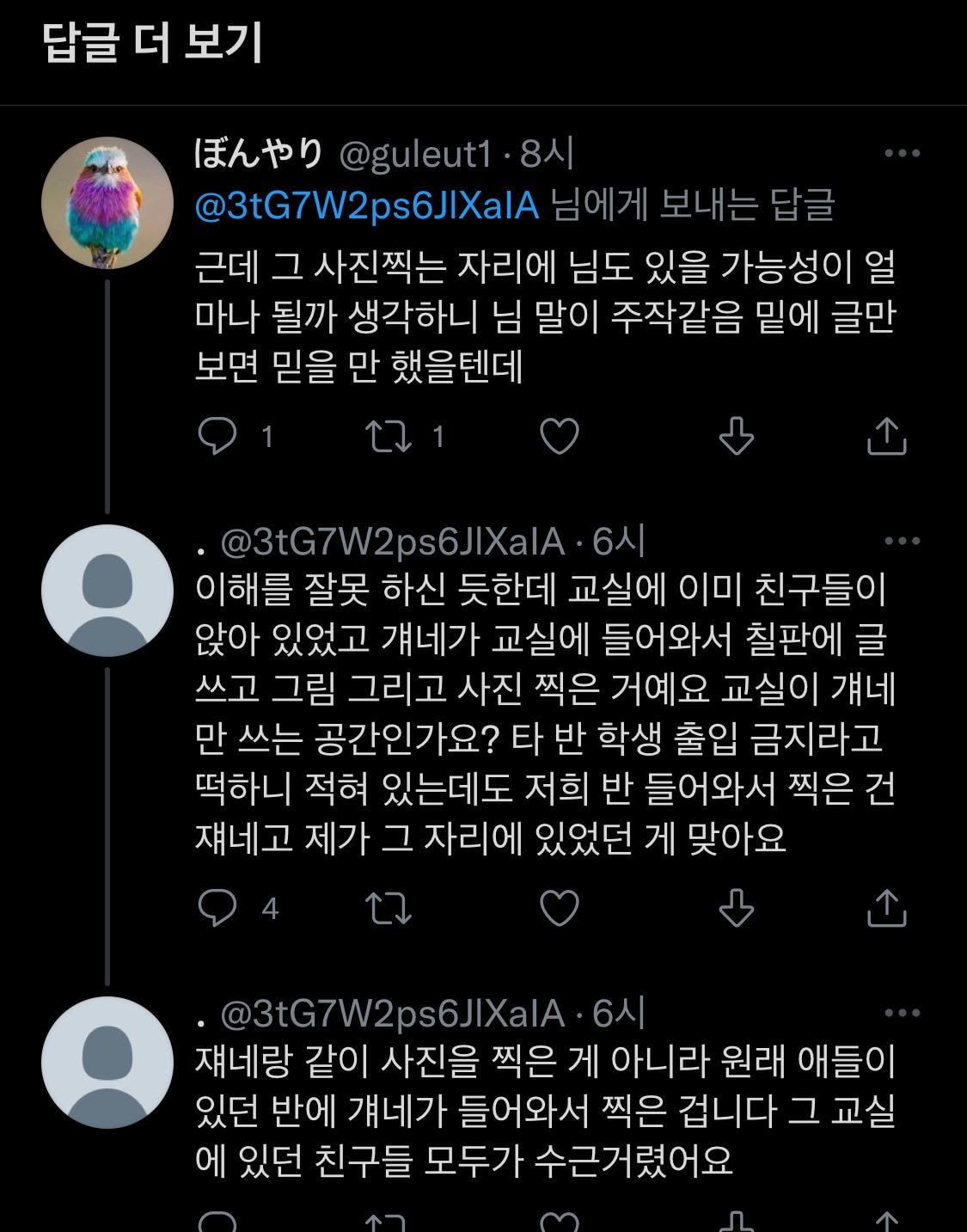 [기타]르세라핌 김가람 끌려가서 칠판 사진 찍었다는 해명글 이상한 이유. 작성자마 트 털 이|작성시간22.04.06|조회수7,473 목록 댓글 1 글자크기 작게가 글자크기 크게가 아예 자리까지 옮겨가면서 찍음 각도상 교탁에 발걸치거나 칠판 아래 올라간거 같은데 못보고 여러장 찍었다는건 ㅋㅋㅋㅋ 다음검색 현재 게시글 추가 기능 열기 북마크 공유하기 신고 센터로 신고 댓글 댓글 1 댓글쓰기 답글쓰기 댓글 리스트 작성자노 시 환 맘 | 작성시간 22.04.06 엥... 댓글 전체보기
