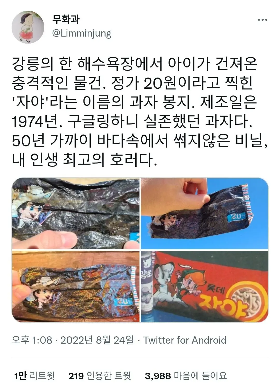 [기타]강릉 바다에서 아이가 건져온 충격적인 물건 작성자우곱창전골|작성시간22.08.25|조회수1,734 목록 댓글 0 글자크기 작게가 글자크기 크게가 다음검색 현재 게시글 추가 기능 열기 북마크 공유하기 신고 센터로 신고 댓글 댓글 0 댓글쓰기 답글쓰기 댓글 리스트