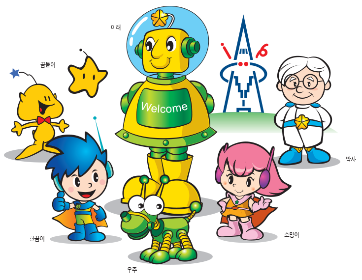 왼쪽은 한빛탑을 지키고 있는 어린왕자 한꿈이고