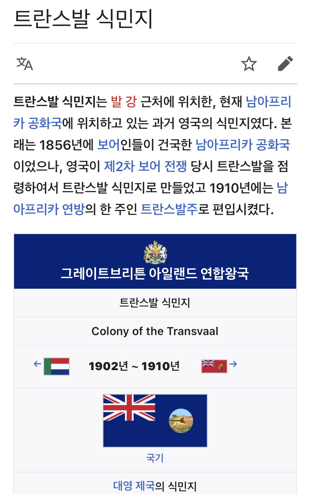 남아공 내에서도 여러나라가 있고 영국한테 차례차례 격파되었는데 그 중 한 나라가 트란스발