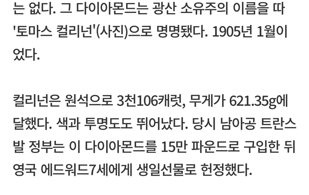 그러니까 저당시 영국식민지가 본국에 다이아 선물(?)한 거