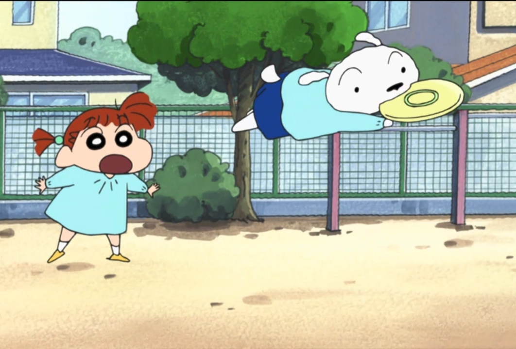 친구들과 원반 던지기 놀이하는 짱구와 희동이