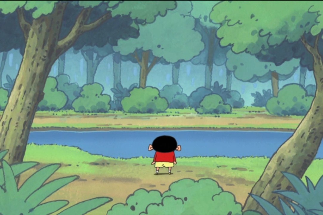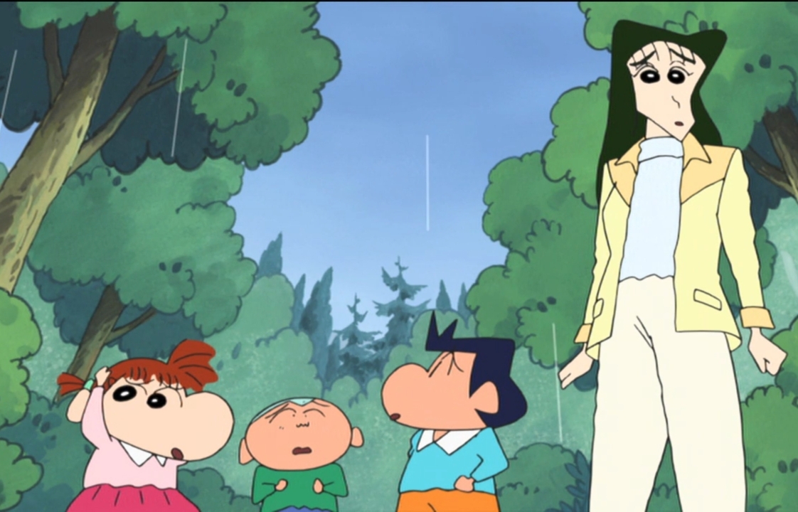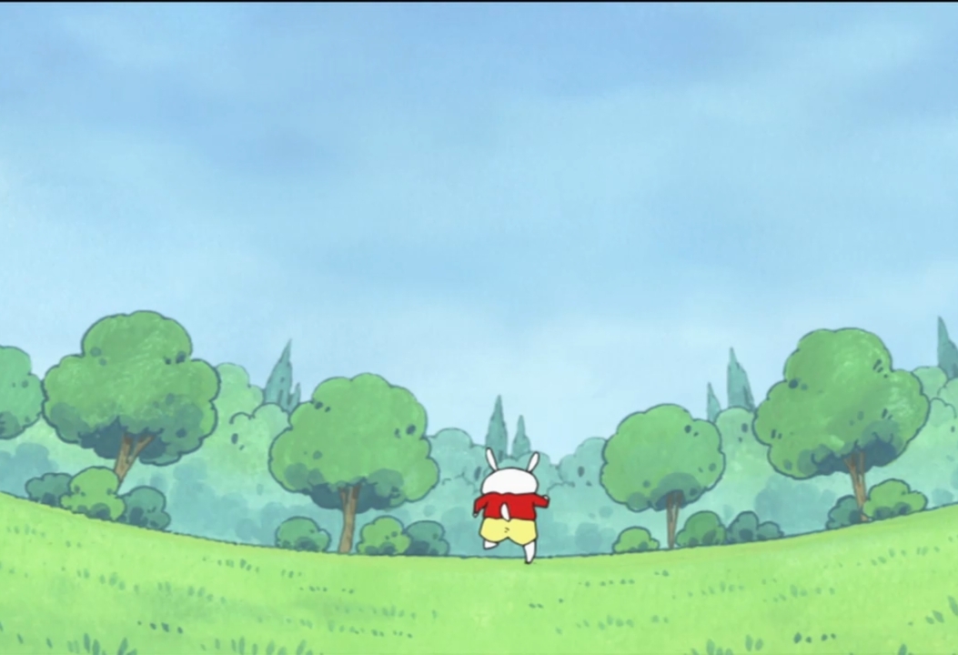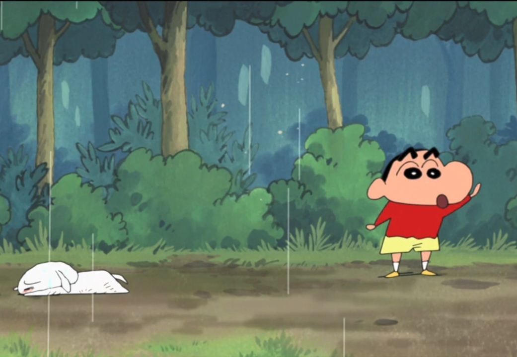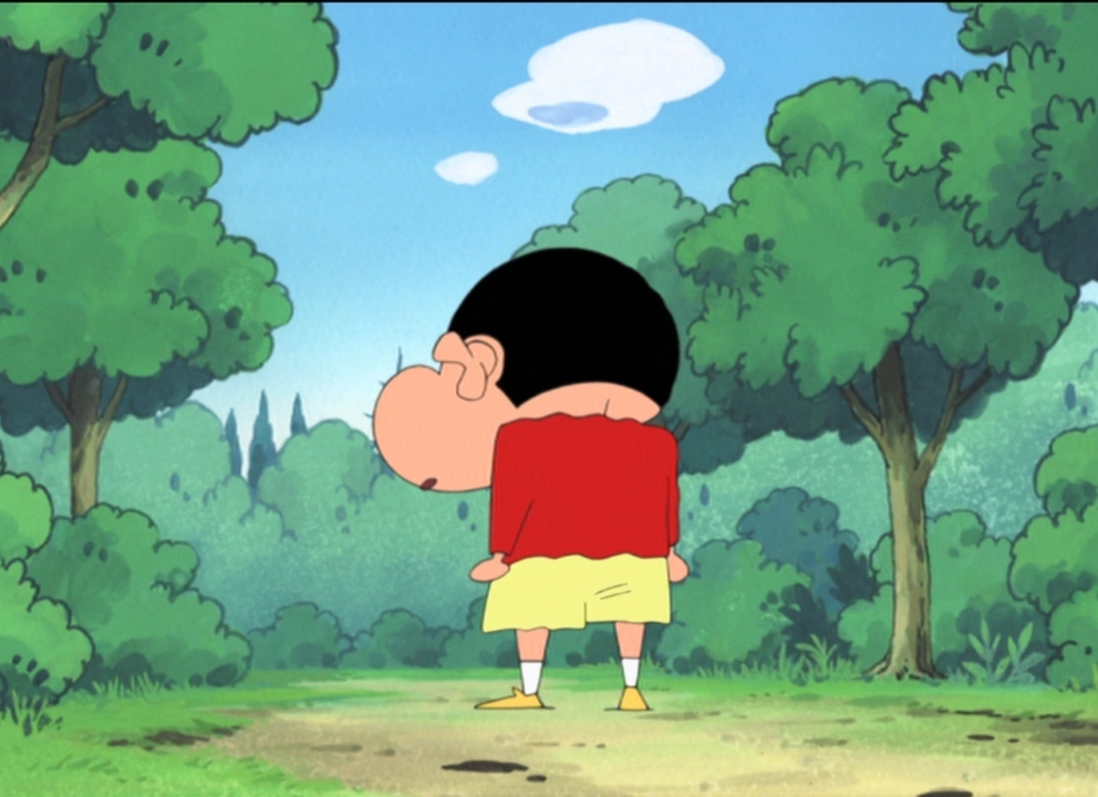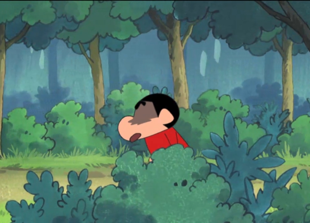 이슬이 누나의 관심을 독차지 하고 싶었던 짱구는 삐친척하며 숲속으로 달려가 사라짐