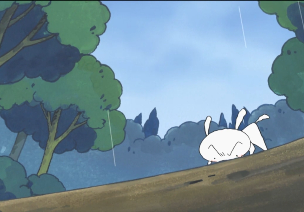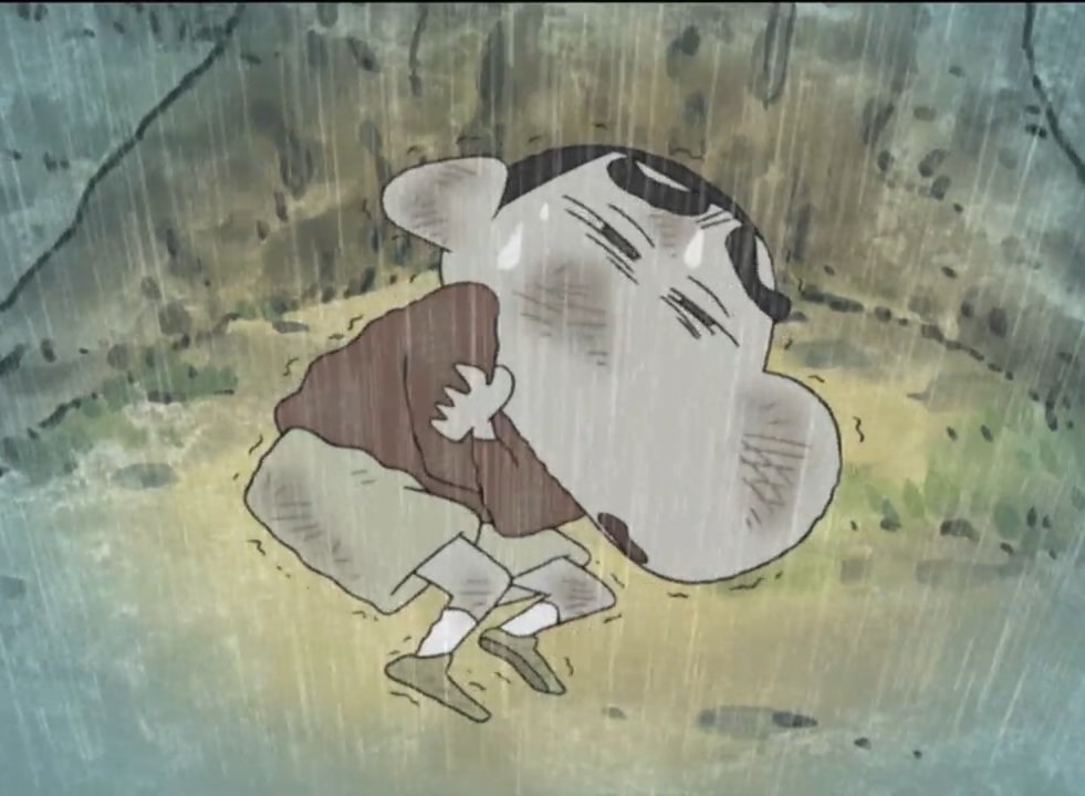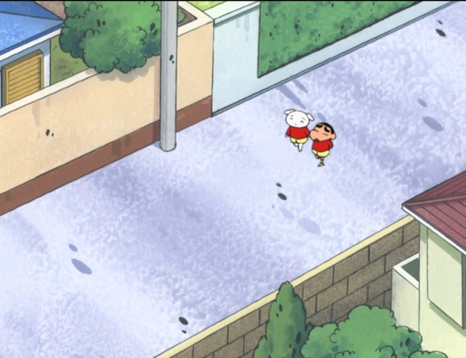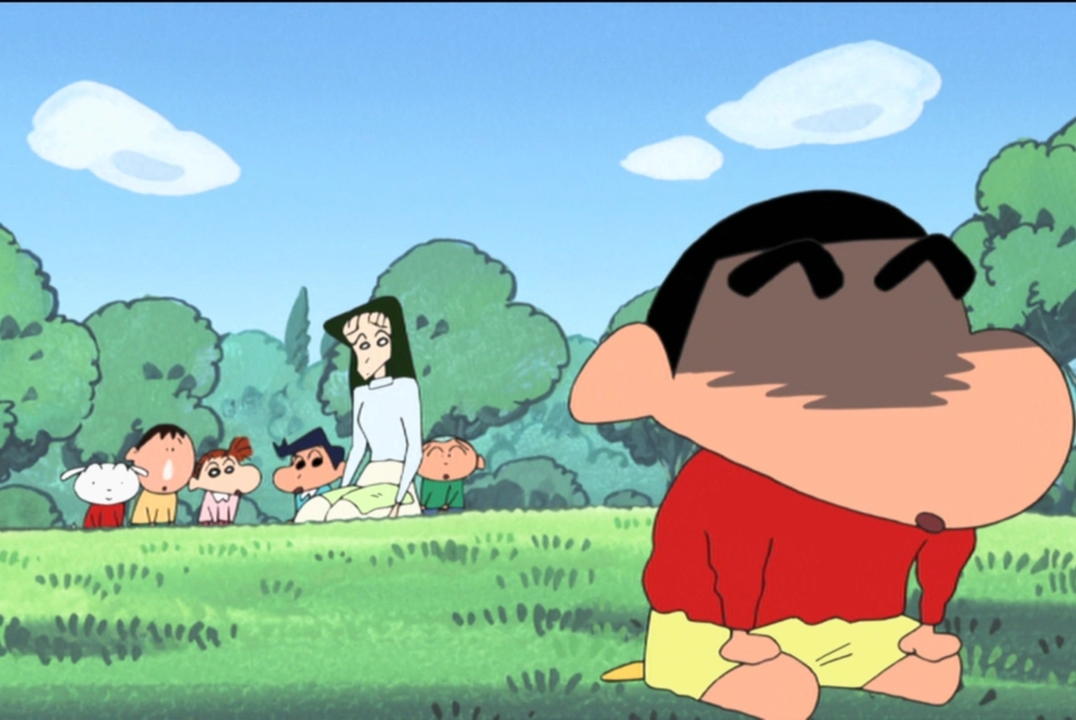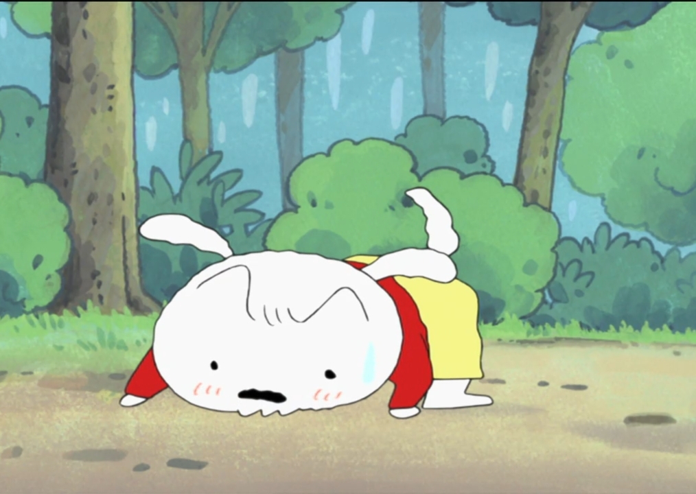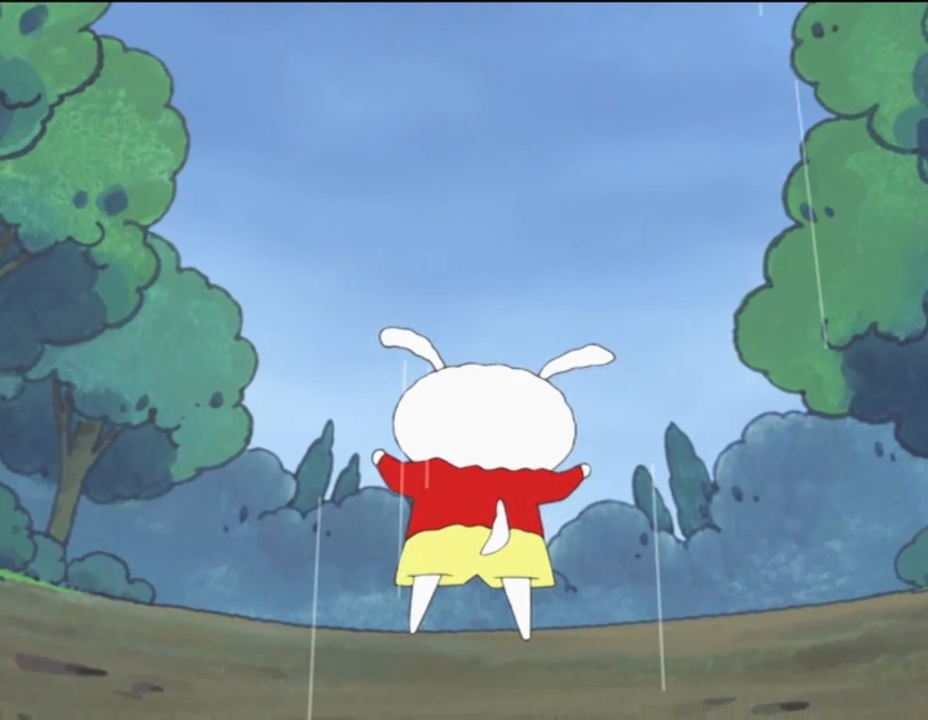 이슬이 누나의 관심을 독차지 하고 싶었던 짱구는 삐친척하며 숲속으로 달려가 사라짐