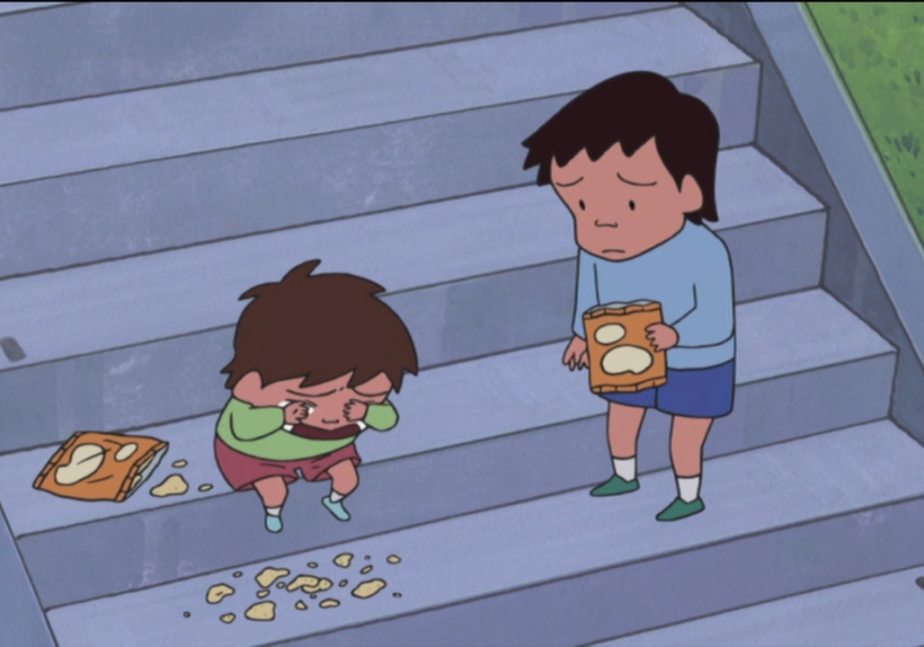 과자를 떨어트린 동생한테 본인의 과자를 주는 형