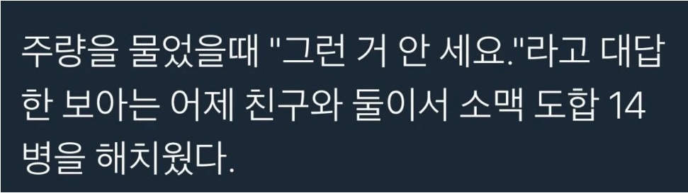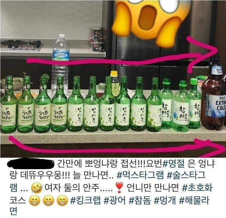 지인이랑 둘이서 소주13+맥주1병 총 14병