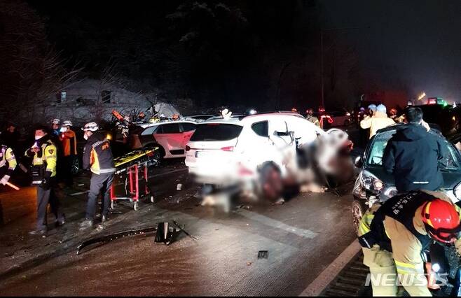 16일 경찰과 소방에 따르면 지난 15일 오후 9시 10분께 경기 포천시 소흘읍 이동교리 포천 방향 구리포천고속도로 축석령 터널 인근에서 차량 44대가 연쇄 추돌하는 사고가 났다.