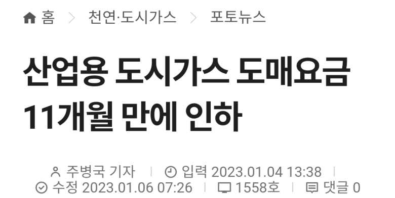 [가스신문 = 주병국 기자] 동결한 민수용과 달리 산업용 도시가스 도매요금은 1월부터 인하됐다.