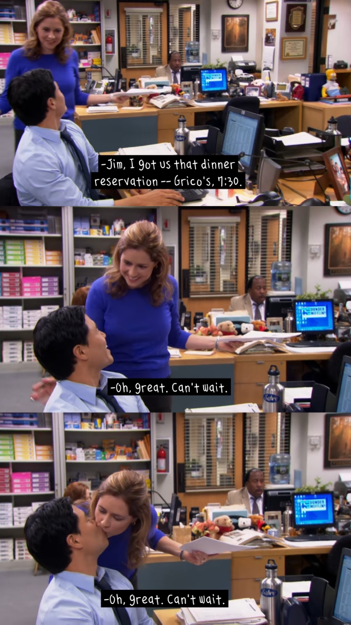 그때 짐 와이프 등장해서 저녁에 레스토랑 예약해놨다면서 뽀뽀함ㅋㅋ