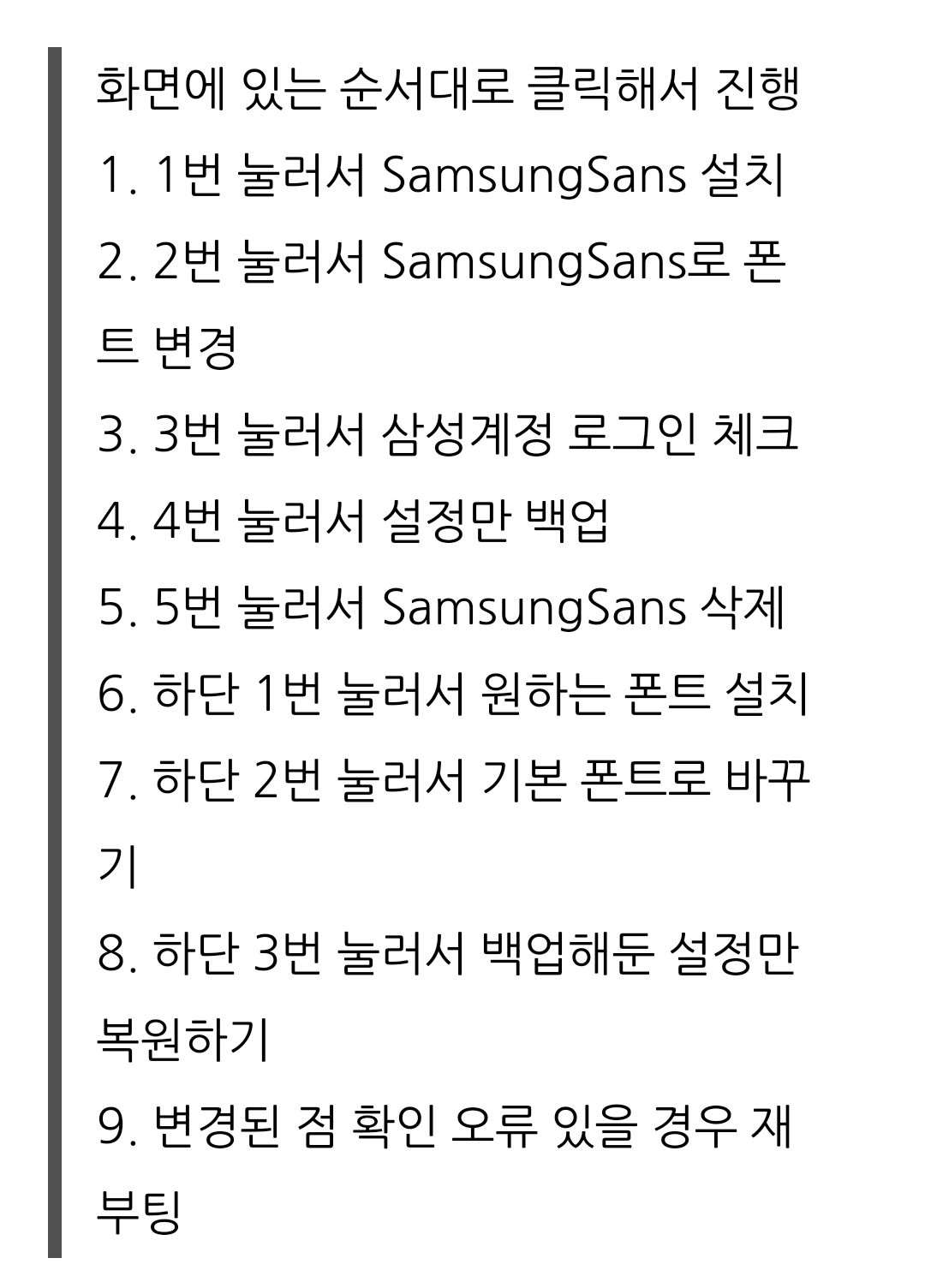 💔💔💔기본 폰트(삼성산스-삼성원 아님)에서만 적용할 수 있음💔💔💔