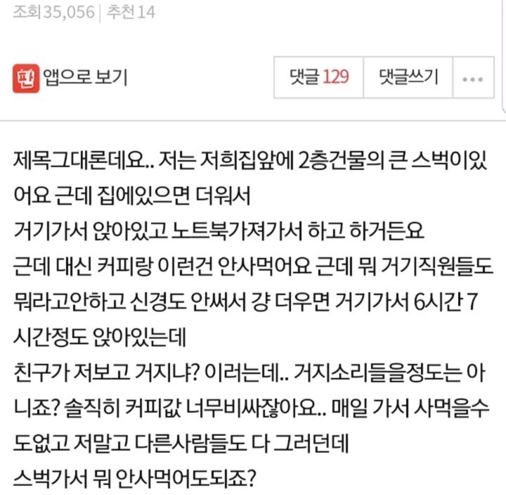 [스크랩] [기타]스타벅스에 음료없이 앉아있으면 민폐인가요? 작성자아침운동|작성시간24.03.04|조회수405 목록 댓글 0 글자크기 작게가 글자크기 크게가 다음검색 스크랩 원문 : 쭉빵카페 현재 게시글 추가 기능 열기 북마크 공유하기 신고 센터로 신고 댓글 댓글 0 댓글쓰기 답글쓰기 댓글 리스트