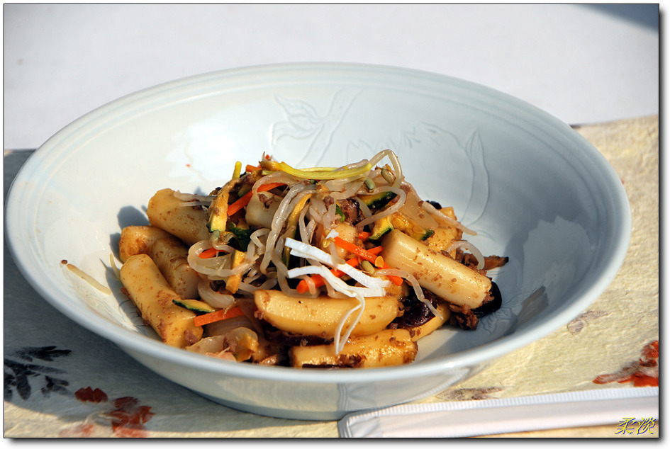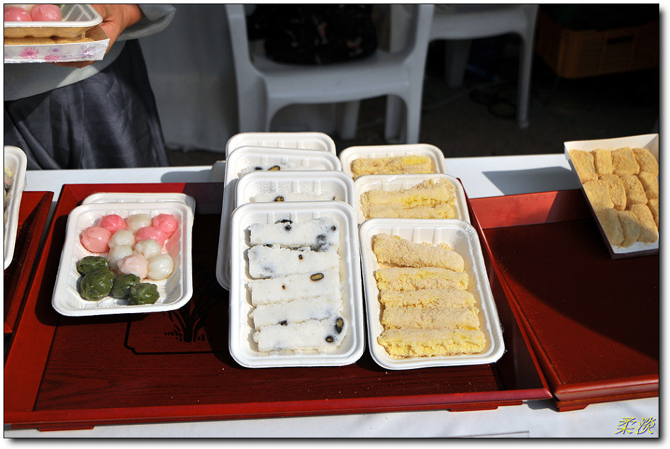 한쪽에서는 음식맛보기 체험으로 궁중떡복기와 떡을 천원에 팔고있다.