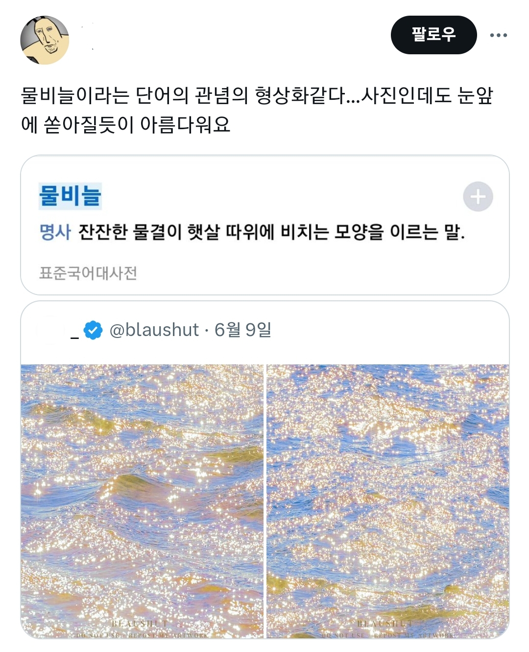 [스크랩] [기타]물비늘이라는 단어의 관념의 형상화같다...사진인데도 눈앞에 쏟아질듯이 아름다워요.x 작성자허니니|작성시간24.06.18|조회수213 목록 댓글 0 글자크기 작게가 글자크기 크게가 https://twitter.com/m84878694/status/1800124696996016495https://twitter.com/blaushut/status/1799756914055860387 다음검색 스크랩 원문 : 방석 위로 모여라 현재 게시글 추가 기능 열기 북마크 공유하기 신고 센터로 신고 댓글 댓글 0 댓글쓰기 답글쓰기 댓글 리스트