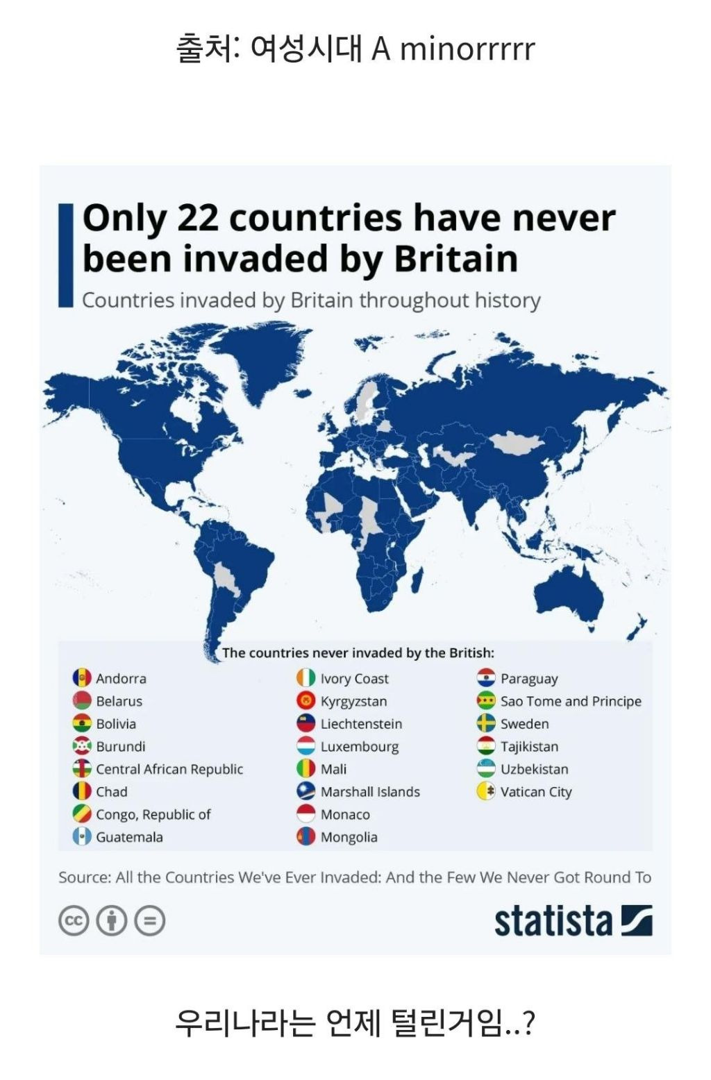 [스크랩] [기타]영국의 침략을 받지않은 22개국 작성자JB|작성시간24.08.21|조회수284 목록 댓글 0 글자크기 작게가 글자크기 크게가 다음검색 스크랩 원문 : 쭉빵카페 현재 게시글 추가 기능 열기 북마크 공유하기 신고 센터로 신고 댓글 댓글 0 댓글쓰기 답글쓰기 댓글 리스트