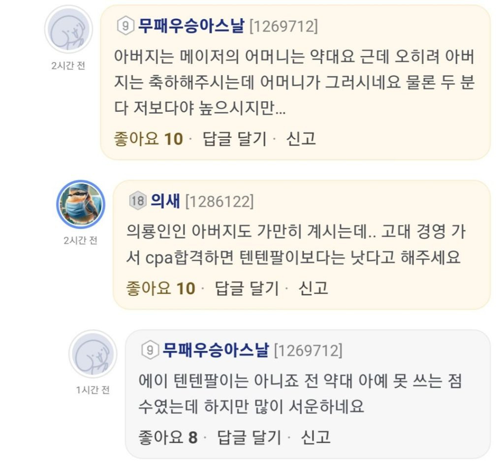 [기타]고대 합격한 아들이 엄마한테 받은 문자 작성자JB|작성시간24.09.17|조회수568 목록 댓글 0 글자크기 작게가 글자크기 크게가 다음검색 현재 게시글 추가 기능 열기 북마크 공유하기 신고 센터로 신고 댓글 댓글 0 댓글쓰기 답글쓰기 댓글 리스트