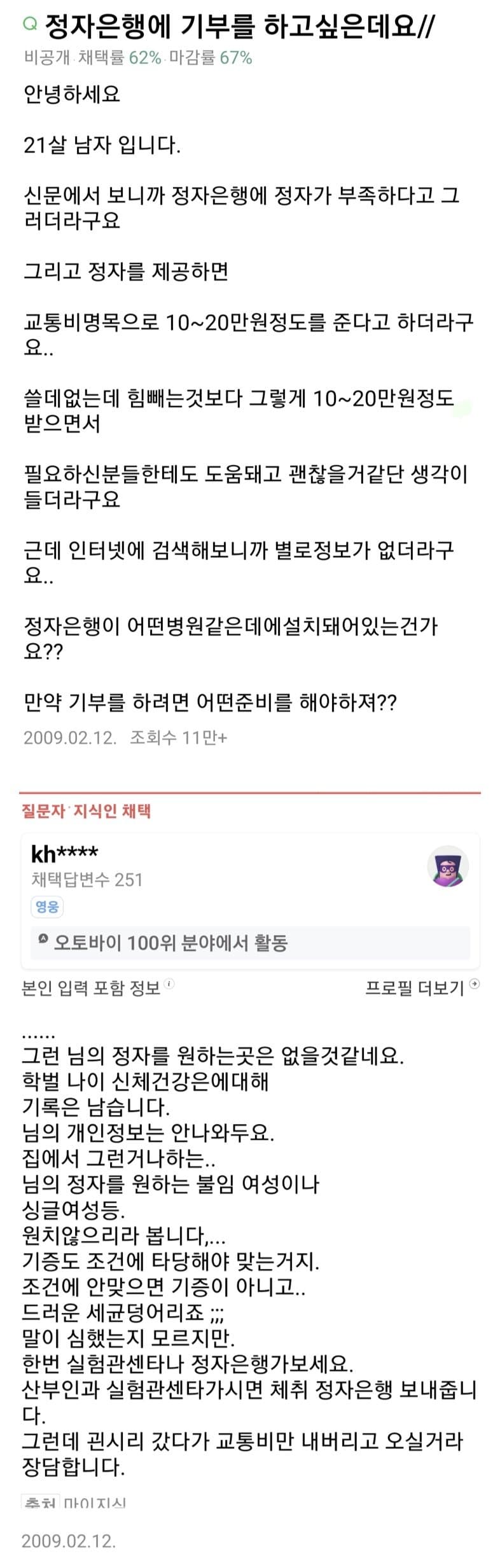 [기타]정자은행에 정자를 기부하고 싶었던 21세 남자. 작성자JB|작성시간24.11.27|조회수224 목록 댓글 0 글자크기 작게가 글자크기 크게가 다음검색 현재 게시글 추가 기능 열기 북마크 공유하기 신고 센터로 신고 댓글 댓글 0 댓글쓰기 답글쓰기 댓글 리스트