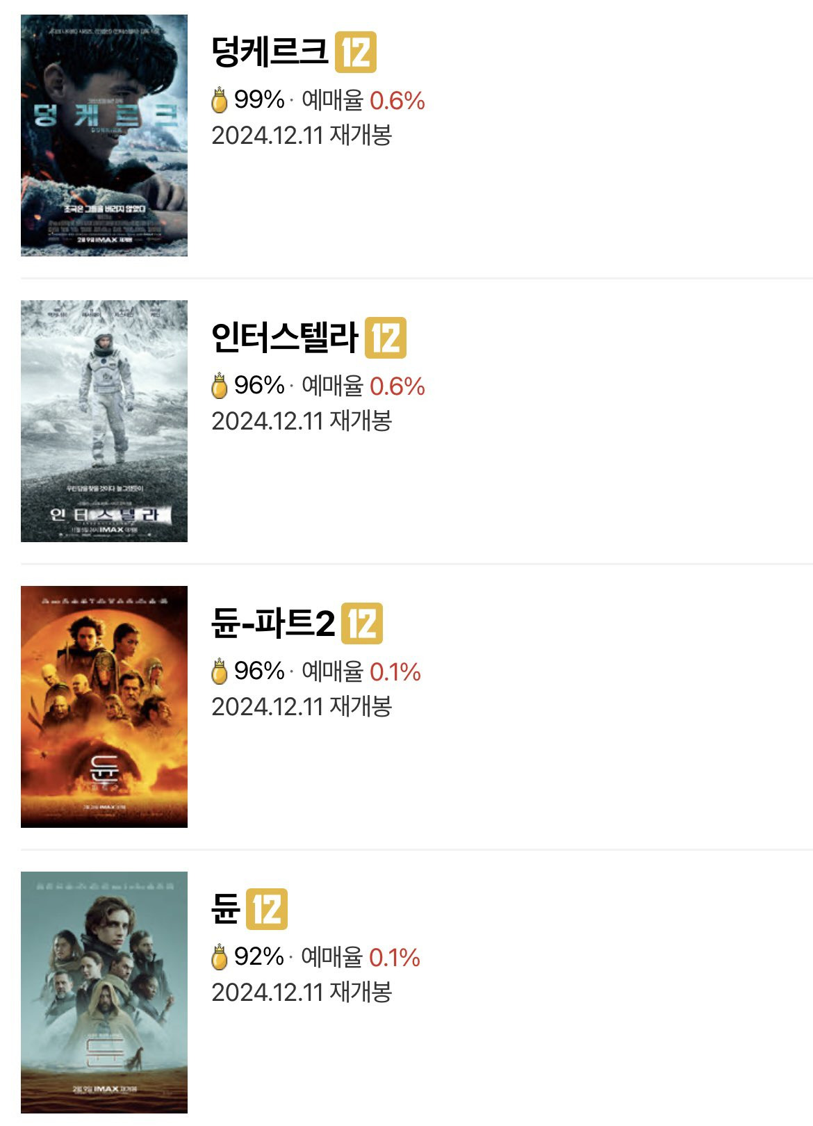 [스크랩] [기타]<인터스텔라>, <덩케르크>, <듄>, <듄: 파트 2> CGV 12월 11일 재개봉 작성자JB|작성시간24.12.04|조회수78 목록 댓글 0 글자크기 작게가 글자크기 크게가 다음검색 스크랩 원문 : 도탁스 (DOTAX) 현재 게시글 추가 기능 열기 북마크 공유하기 신고 센터로 신고 댓글 댓글 0 댓글쓰기 답글쓰기 댓글 리스트