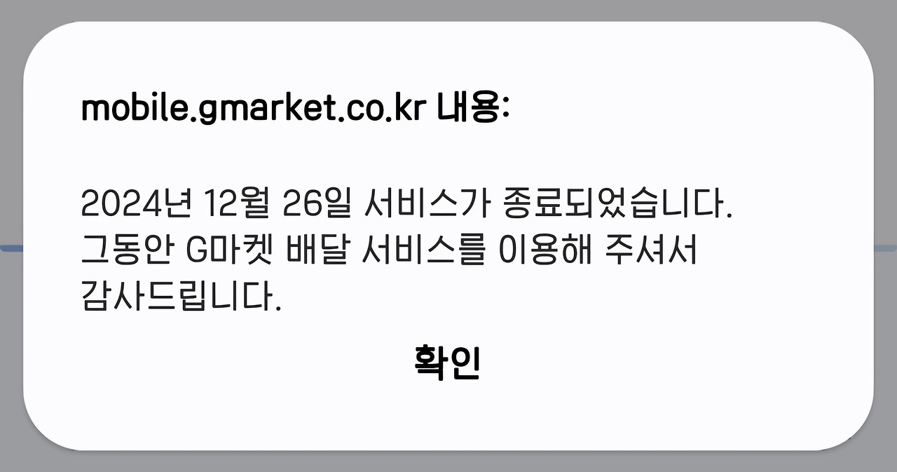 [기타]지마켓 배달 서비스 종료됨 작성자JB|작성시간24.12.31|조회수301 목록 댓글 0 글자크기 작게가 글자크기 크게가 다음검색 현재 게시글 추가 기능 열기 북마크 공유하기 신고 센터로 신고 댓글 댓글 0 댓글쓰기 답글쓰기 댓글 리스트