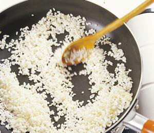 그럴땐 쌀을 기름없이 후라이팬에 볶는다. 거의 갈색수준으로 태우듯이